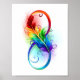 Símbolo de infinito dibujado artísticamente con una hermosa pluma arco iris sobre fondo blanco. Estilo tatuaje.