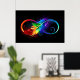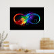 Símbolo de infinito dibujado artísticamente con una hermosa pluma arco iris sobre fondo blanco. Estilo tatuaje.