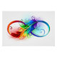 Símbolo de infinito dibujado artísticamente con una hermosa pluma arco iris sobre fondo blanco. Estilo tatuaje.