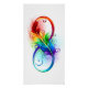 Símbolo de infinito dibujado artísticamente con una hermosa pluma arco iris sobre fondo blanco. Estilo tatuaje.