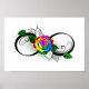 símbolo infinito con rosa arcoiris sobre fondo blanco.