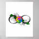 símbolo infinito con rosa arcoiris sobre fondo blanco.