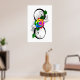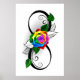 símbolo infinito con rosa arcoiris sobre fondo blanco.