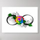 símbolo infinito con rosa arcoiris sobre fondo blanco.