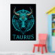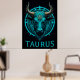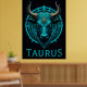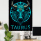 Póster Símbolo zodiaco de Taurus en acento azul y oro vib