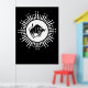 Este impactante diseño blanco y negro presenta un toro atrevido en el centro, que representa el poderoso signo zodiaco de Taurus. Rodeada de vigas radiantes y estrellas dispersas, la composición circular crea una atmósfera celeste y mística. El contraste agudo y la pose dinámica del toro resaltan los rasgos Taurus de fuerza, determinación y energía de tierra, lo que lo convierte en un diseño llamativo para los entusiastas de la astrología.