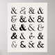 Un diseño de veinte símbolos Ampersand diferentes con letras negras.