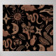 Póster Símbolos místicos: serpiente, sol, luna.