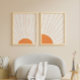 Sol bohemio en acuarela en color naranja. adecuado para estilos modernos y minimalistas. fácil de combinar con cualquier habitación, sala, dormitorio, guardería y otros. El color de fondo se puede editar.
