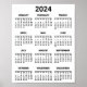 Póster Simple Black & White 2024 Year At Glance Calendar