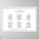 Sencillo poster de tamaño A1 con un diseño moderno y elegante con su monograma de dos letras, nombres y fecha con la gráfica siguiente, rodeado por un borde delgado. La plantilla consta de tres columnas con seis mesas de diez personas como ejemplo, pero se puede personalizar para el número de mesas e invitados. En la parte inferior está el lugar y el estado. Moda y diseño elegante en blanco y negro, ideal para una pareja minimalista.