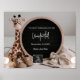 Una simple escena neutra prefecta para la invitación del embarazo con una tierna jirafa sentada al lado de un tablero de cartas. El embarazo de la jirafa se revela en las redes sociales: invitación de embarazo, tonos neutros, carta de cartas, revelación minimalista y elegante del embarazo, invitación de personalizable.