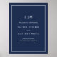 Póster Simple Navy Blue Monograma Elegante Boda