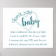 Simple "No digas bebé" horizontal ducha de bebé o señalización de mesa de juego revelada por género con un divertido guión con letras a mano. El diseño clásico incluye un moderno superpuesto de tipografía con letras a mano. El bonito tipo de letra con un color de fondo de personalizable facilita la adaptación a cualquier tema. Para otros colores o productos a juego, por favor visite la tienda JustFharryn Zazzle, o contacte con el diseñador, c/o fharryn@yahoo.com Todos los derechos reservados. #zazzlemade