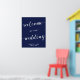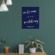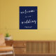 Sencillo cartel de recepción de boda azul marino con texto de personalizable, puede añadir el nombre de la novia y del novio y la fecha del boda. Las dimensiones de la huella de signo (poster) son de 22 pulgadas por 28 pulgadas.