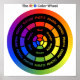 This simple RYB (Red, Yellow, Blue) color wheel has RGB hex codes and color names.