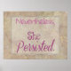Una frase que rápidamente se ha convertido en un grito de guerra para el movimiento por los derechos de las mujeres, así como para los actuales movimientos por los derechos civiles políticos en general. La fuerza para persistir seguirá ganando el día, a tiempo, por encima de todos los obstáculos. Una manera perfecta de mostrar su apoyo... Sin Embargo, Persistió.