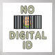 Ningún ID digital es un diseño de identificación antiobligatorio. Muestra las palabras y una prisión de código de barras con un tipo de palo adentro tratando de salir. Una declaración de protesta contra la vigilancia, y a favor de la privacidad y la libertad civil.
