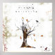 la parte superior es de diferentes tonos y capas de blanco, en el centro hay un solo árbol desnudo con algunas hojas de otoño cayendo de él, con una pequeña cuerda negra encaramada en una sola rama, se tiene la sensación de soledad pero al mismo tiempo, esperanza.
