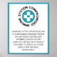 Señal de advertencia a la puerta para advertir a los visitantes que no se abrirá si tocan o tocan el timbre porque alguien en su casa tiene un sistema inmune comprometido. El poster de advertencia tiene una cruz blanca con un corazón azul.
