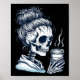 Póster Skeleton Beber café Messy Bun Women Halloween