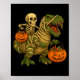 Póster Skeleton Riding Mummy Dinosaur T Rex Halloween Fun