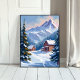 Póster Ski Cabin Mountain Landscape Watercolor Winter