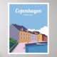 Afiche de viajes de la ciudad de Copenhague en un edificio colorido. fondo de ilustracion con estilo de color
