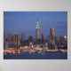 Una vista nocturna temprana del Skyline de la ciudad de Nueva York vista desde el otro lado del río Hudson en Nueva Jersey.