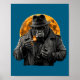 Póster Smoking Gorilla In Trench Coat With Orange Moon Ar