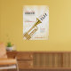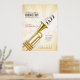 Customize this trumpet/music event advert poster with your info. Subtle musical notes and piano/keyboard keys are featured in the background.