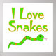 A bright green snake on a poster with the words I Love Snakes is just great for any wall.