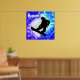 La acción deportiva y la energía de los atletas snowboard se capturan en siluetas de figuras de acción que muestran trucos extremos y maniobras en sus tablas. Los cuadros y ilustraciones digitales de estos adolescentes y jóvenes incluyen antecedentes de colores vivos y brillantes y salpicaduras y ráfagas de luz para resaltar la acción. También se exhiben en nieves y nieves agrias y escenas de laderas donde los niños ganan sus criados callejeros mostrando sus habilidades en el abordaje estilo libre y en la media tubería.