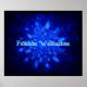 Una temática invernal con un enjambre de copos de nieve fractales azules. El texto que dice "Froehliche Weihnachten" aparece en azul brillante y blanco.