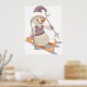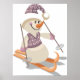Un hombre de nieve esquiando con esquís, postes y un gorra. Este diseño parece realmente efectivo en este Poster