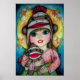 Arte adorable de gran chica de ojos que incluye un mono de calcetín colorido