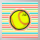 Guay, diseño de softball amarillo lindo en rayas coloreadas rojas, naranjas, amarillas, verdes, azules y blancas de arcoiris. ¡Un gran regalo para los aficionados al softbol o al deporte!