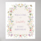 Elegant Welcome Sign Featuring Gorgeous Colorful Wildflowers in Delicate Pastel Tones