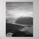 Foto en blanco y negro del fiordo de Sognefjord, el "Rey de los fiordos", tomada sobre la ciudad de Balestrand, Noruega.