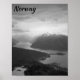 Foto en blanco y negro del fiordo de Sognefjord, el "Rey de los fiordos", tomada sobre la ciudad de Balestrand, Noruega.
