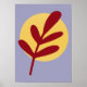 Una silueta de un tallo de planta roja con un sol amarillo sobre un fondo de lavanda claro.