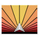 Un clásico estilo Art Déco patrón sol en colores del amanecer. Un patrón icónico del sol saliendo por detrás de un estilizado edificio de estilo Art Déco. Un diseño sencillo pero elegante, fiel a la época.