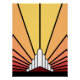 Un clásico estilo Art Déco patrón sol en colores del amanecer. Un patrón icónico del sol saliendo por detrás de un estilizado edificio de estilo Art Déco. Un diseño sencillo pero elegante, fiel a la época.