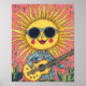 Arte generado por IA del caprichoso sol feliz tocando la guitarra
