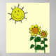 ¿Están bordados? No, pero de seguro se parecen. Un sol brillante y feliz brilla sobre dos girasoles altos. Un diseño perfecto para el verano.