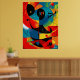 Dynamic curved shapes in teal, red, and amber evoke the warmth of a solar eclipse. This mid-century abstract composition bridges Bauhaus precision and freeform motion, ideal for modern interiors and creative spaces. Printed in vibrant tones for maximum visual depth and contemporary style.