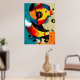 Dynamic curved shapes in teal, red, and amber evoke the warmth of a solar eclipse. This mid-century abstract composition bridges Bauhaus precision and freeform motion, ideal for modern interiors and creative spaces. Printed in vibrant tones for maximum visual depth and contemporary style.