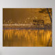Soleado banco de madera junto al lago, bajo la luz dorada del sol que se pone en el poster de Finlandia Occidental.