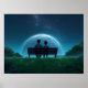 Póster Solitary Man on Bench Watching Birds Black and Whi