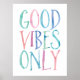Póster Sólo buenos vibraciones - Tipografía de acuarela c